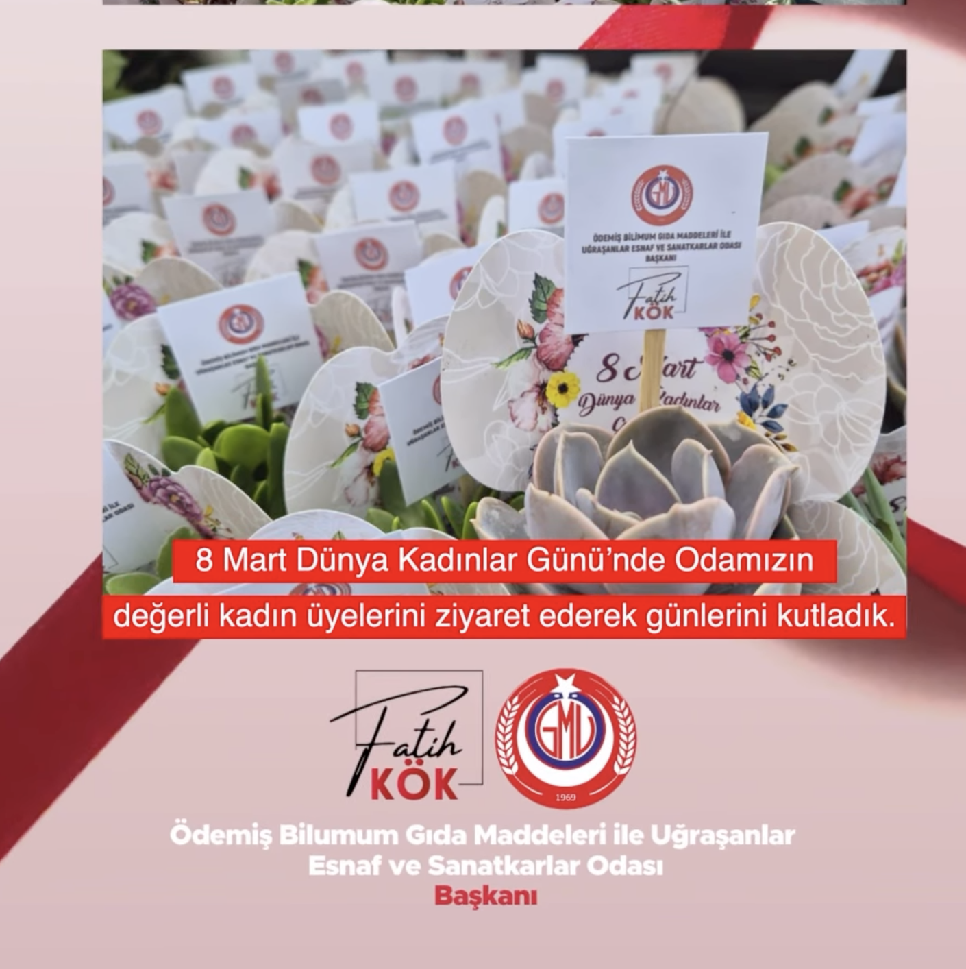 8 Mart Dünya Kadınlar Günü vesilesiyle, Ödemiş Bilimum Gıda Maddeleriyle Uğraşanlar Esnaf ve Sanatkarlar Odası tarafından kadın üyeler ziyaret edilerek bu özel günleri kutlandı.